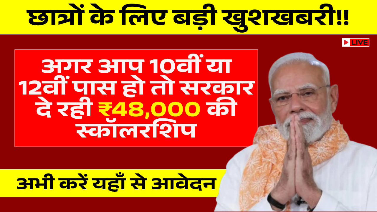 छात्रों के लिए बड़ी खुशखबरी!! अगर आप 10वीं या 12वीं पास हो तो सरकार दे रही ₹48,000 की स्कॉलरशिप
